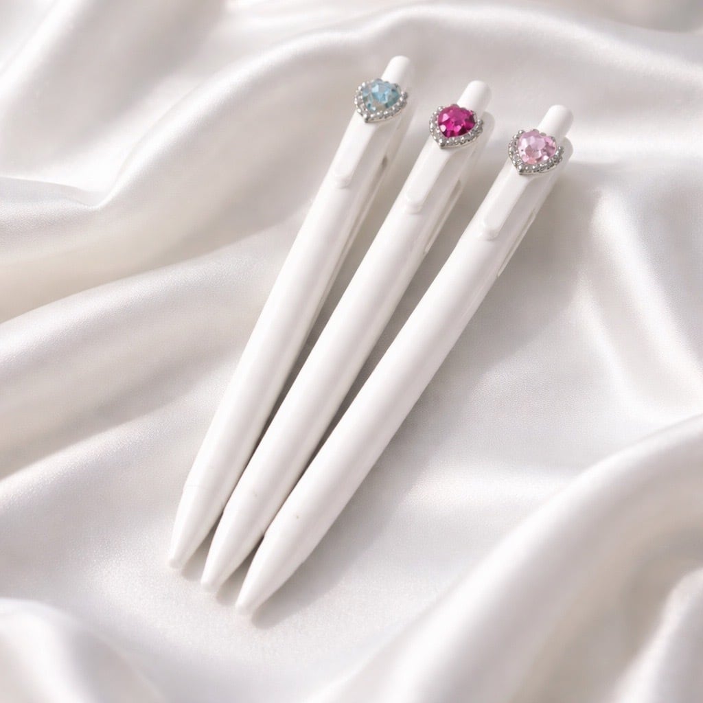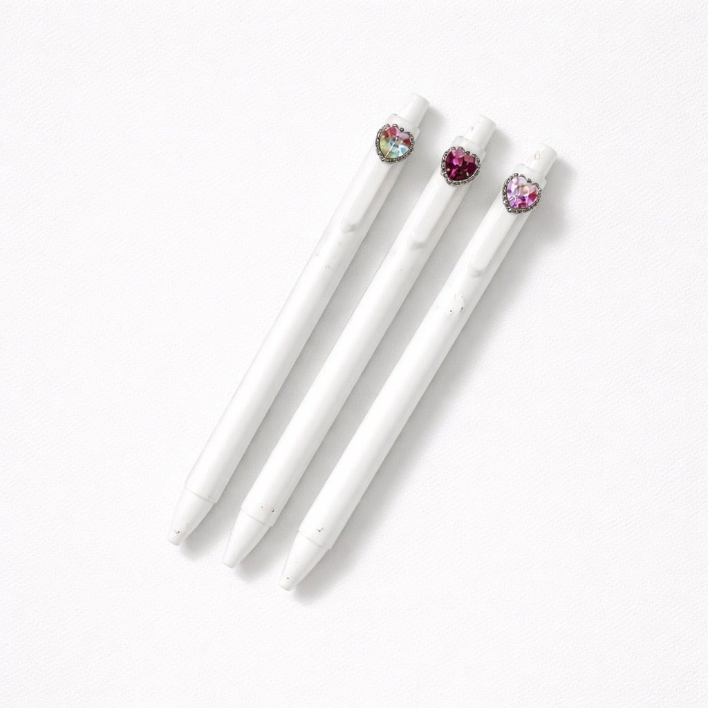 デコレーションボールペンホワイト★3Pセット★パヴェハート BP0001-WH