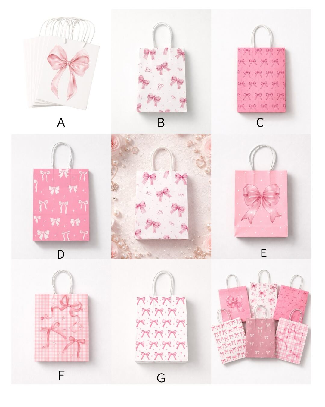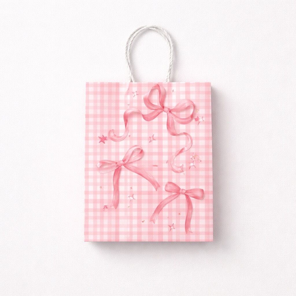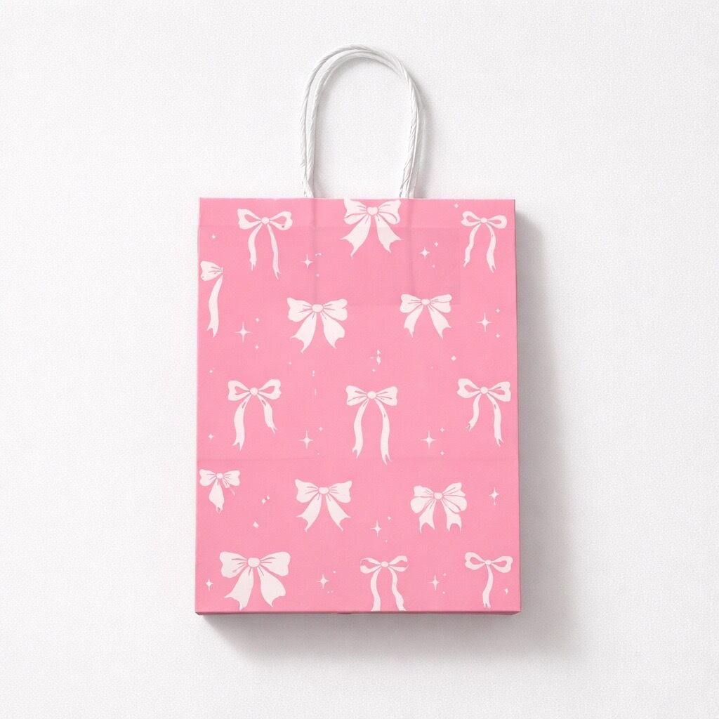 リボンのイラストがキュートなSサイズの紙袋の登場です。