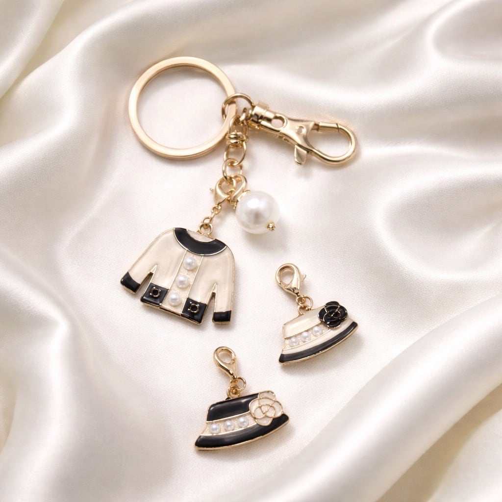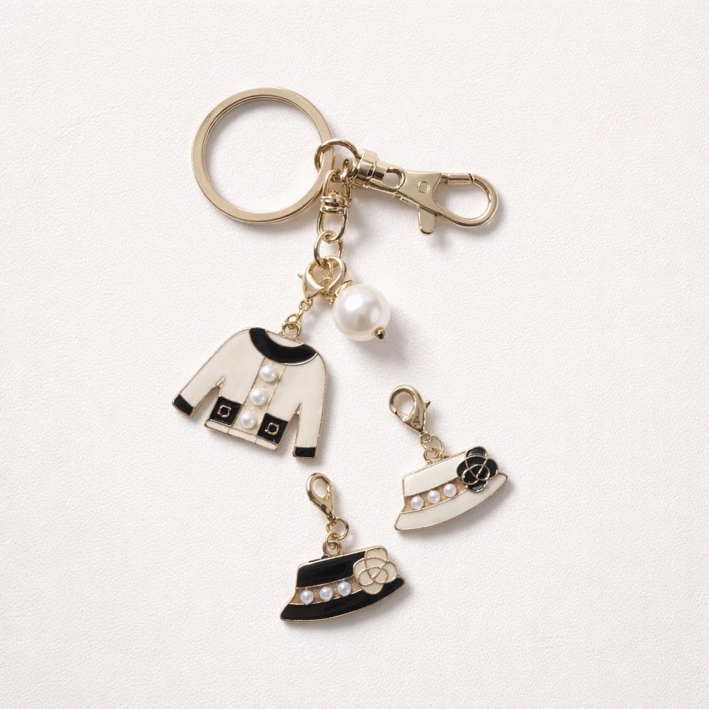 COCOモチーフのジャケット又はHATが選べるキーホルダーは日常の鍵などを楽しく装飾してくれるアイテムです。パールがついているのも嬉しいデザインです。