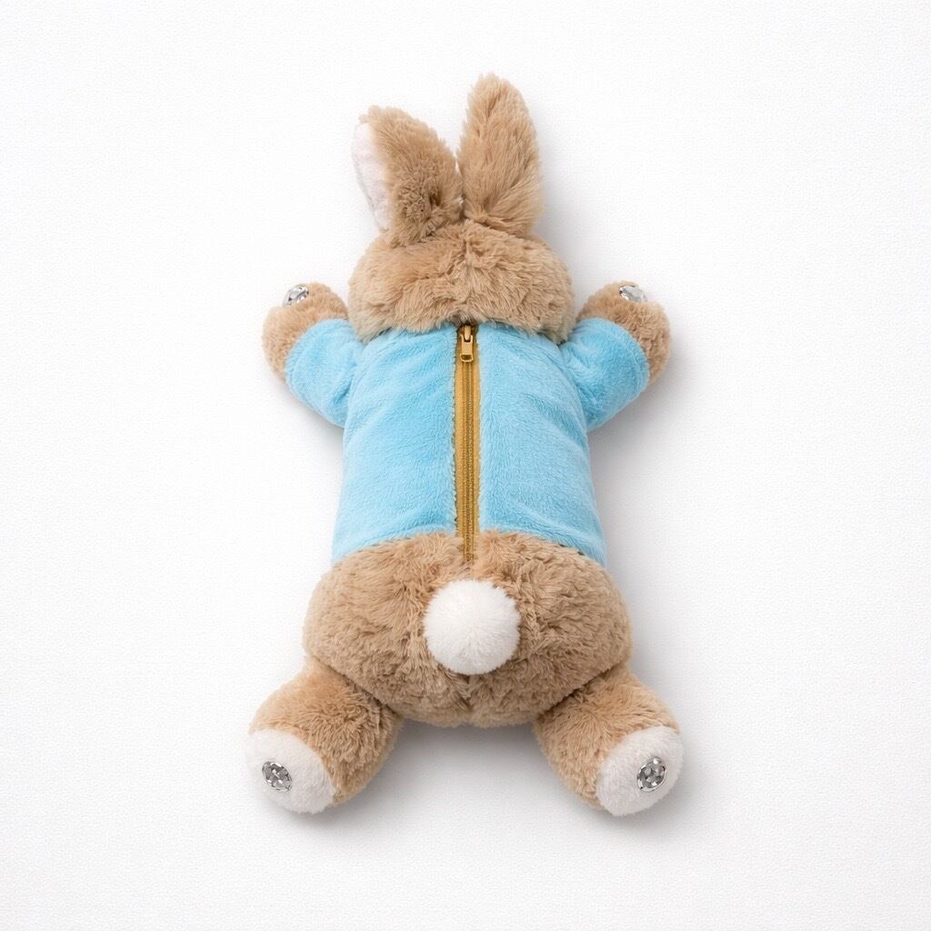 ぬいぐるみのようなウサギデザインのペンケースです。首元にあしらわれたリボンと、手足に散りばめられたビジューがとても可愛らしく、見る人を笑顔にしてくれます。かわいいデザインは、学用品の収納を楽しくしてくれます。