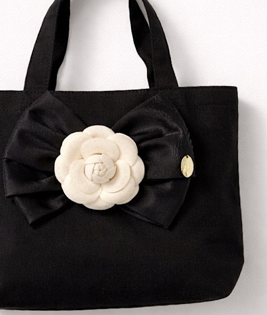 エレガントなカメリアとサテンリボンをあしらったキャンバストートバッグです。
